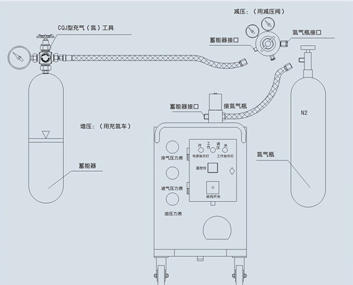 ② Si tiene requisitos especiales para herramientas de inflado (como herramientas de inflado para acumuladores de diafragma, herramientas de inflado para acumuladores importados, etc.), negocie con nuestra empresa.